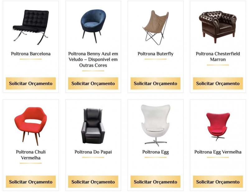 Na Memoriah Eventus Soulucao e Entretenimento obras e eventos, você encontra poltronas para alugar a partir de R$ 55. Basta selecionar a peça e a quantidade que deseja para solicitar um orçamento.