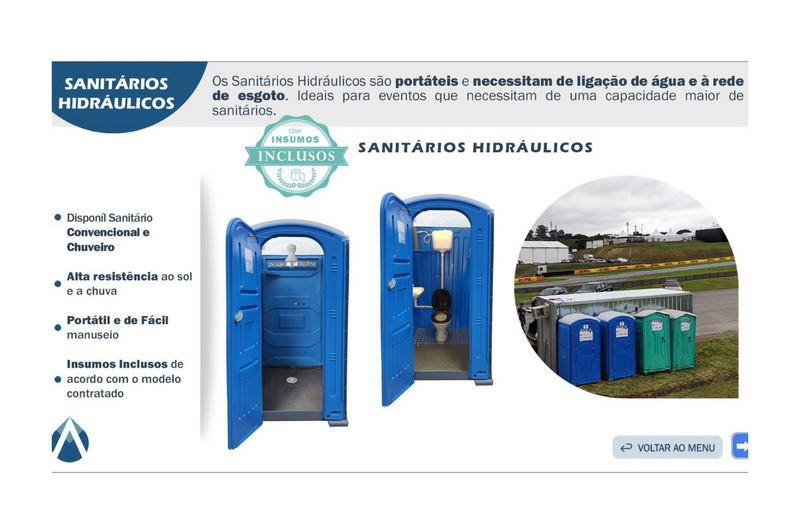 Os sanitários hidráulicos são portáteis e dependem de ligação de água e à rede de esgoto.